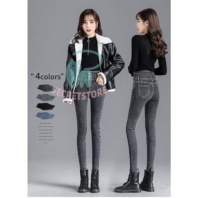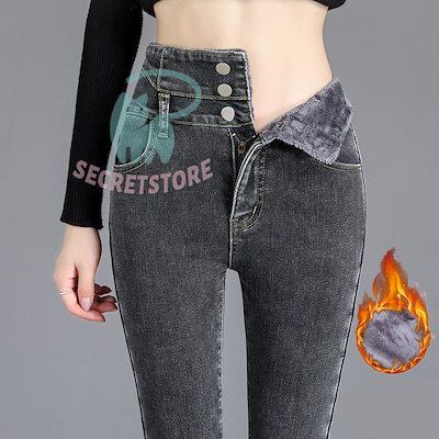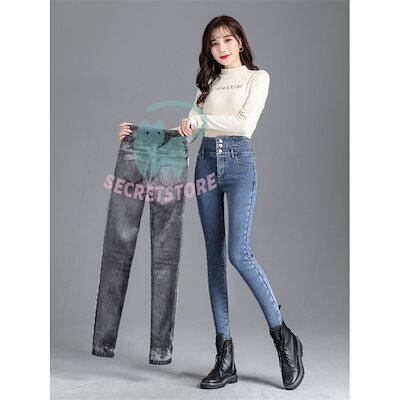 新品(タイムセール)スキニーパンツ レディース デニム スリム 裏起毛 暖かい ハイウエスト 大きいサイズ 10分丈 ジーパン美脚 ボ 寒さ対策 防寒 無地