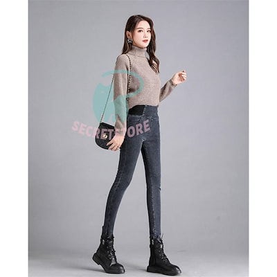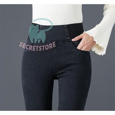 新品(タイムセール)スキニーパンツ レディース デニム ハイウエスト ジーンズ ストレッチ 裏起毛あり 10分丈 ジーパン 美脚 ボ 大きいサイズ 無地
