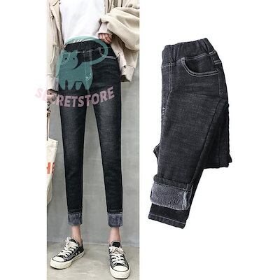 新品(タイムセール)デニムパンツ レディース ボ 裏ボア 裏起毛 ストレッチ ジーンズ 美脚 ジーパン スキニー ハイウエスト ウエストゴム チノパン 体型カバー