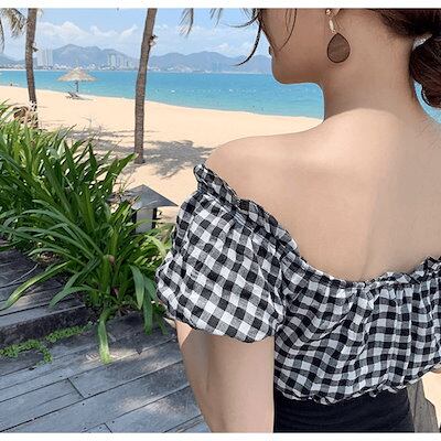 2024 春夏 露出を控えた ファッション 切り替え ビキニ スイムウェア付き タンキニセパレート スタイルアップ 海プール可愛い海水浴花 大人女子水着 レディース スリーブフレンチ