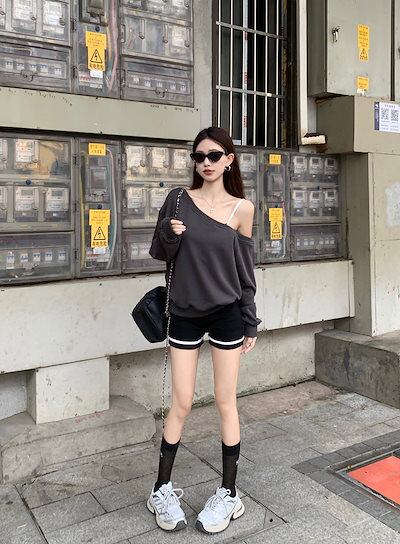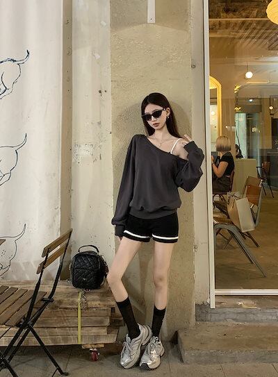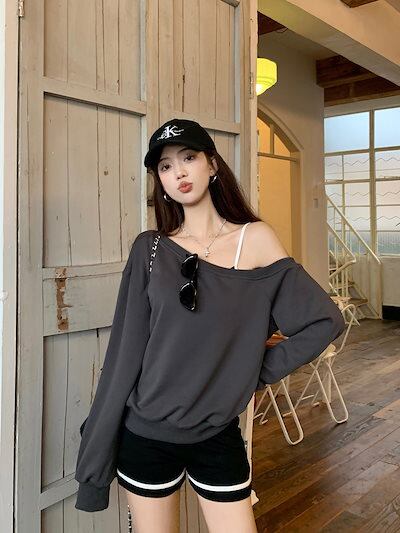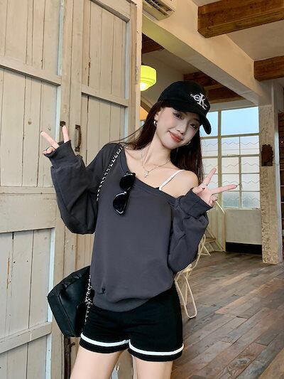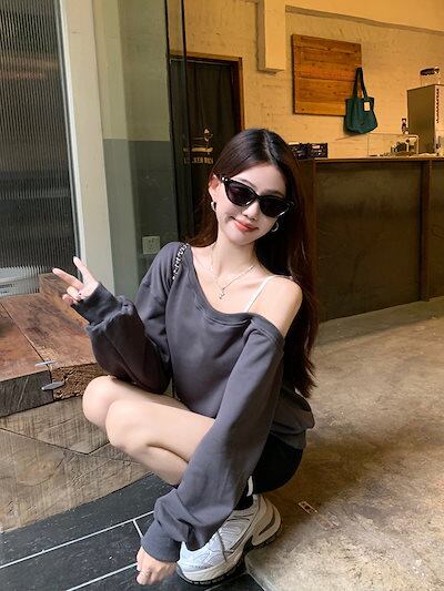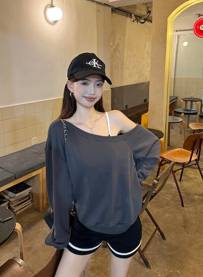 2024 秋冬 トップス 長袖 かわいいラウンドネック Tシャツ 肌見せ レディース 韓国風 ルーズ ゆったり 無地 カジュアル おしゃれサイズ シルエットファッション系コーデ衣装お出かけ3