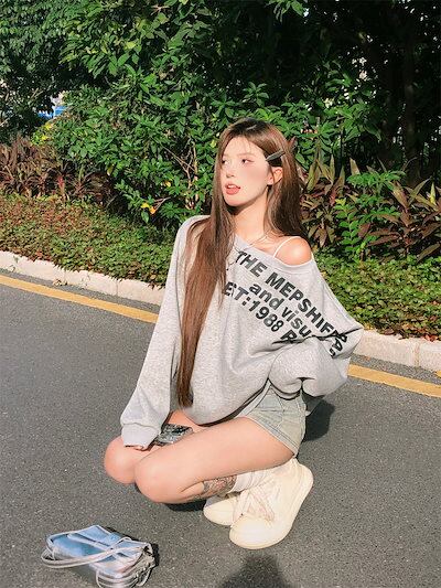 2024 秋冬 トップス 長袖 かわいいラウンドネック Tシャツ レディース 韓国風 96 ルーズ ゆったり 無地 カジュアル おしゃれサイズ シルエットファッション系シャツ衣装お出かけ