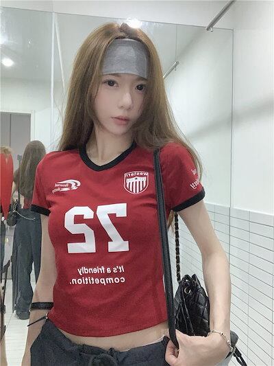 2024 春夏トップス 大人可愛い風半袖 Tシャツ 韓国 ラウンドネックロゴスリム かわいいへそ出しショート おしゃれスリーブカジュアルサイドコーデ丈 ファッション系レディースストリート T