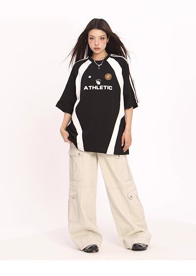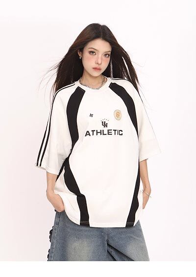 2024夏 韓国可愛い風トップス Tシャツ ファッション 半袖 スリムフィット サイド ペイントシルエット ゆったり丈 休日レディースサイズ韓国Vネック おしゃれ カジュアル メンズライク T1