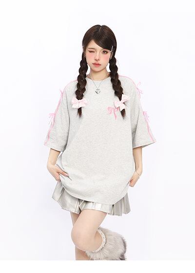 2024夏 韓国可愛い風トップス Tシャツ ファッション系 半袖 スリムフィット サイド ペイントシルエット ゆったり丈 ロングレディースサイズ韓国Vネックおしゃれカジュアルメンズライク T