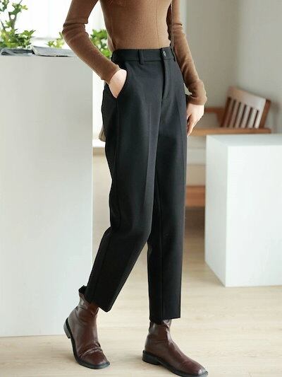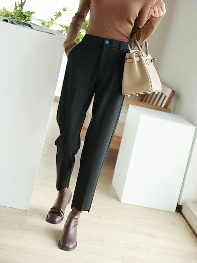 脚長効果!スキニーデニムパンツ 秋冬のミニストレートツイードパンツの裾のデザイン煙管パンツ研ぎ毛ウエストパンツ レディース 韓国
