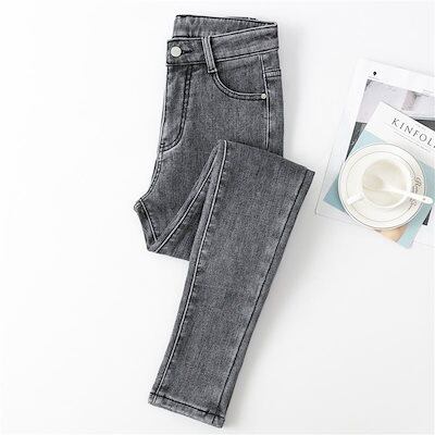 脚長効果!スキニーデニムパンツ2024年夏秋冬新作ハイウエストジーンズ 薄くてタイト韓国