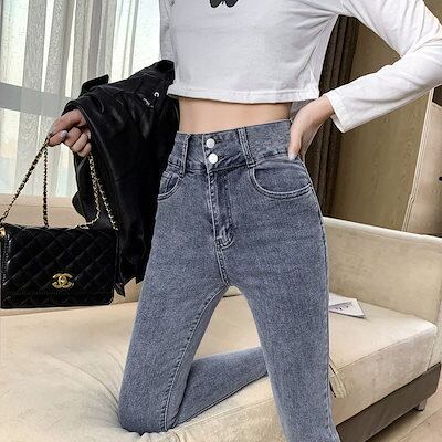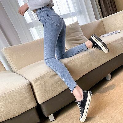 脚長効果!スキニーデニムパンツ2024春秋学生向け新作ハイウエストジーンズスキニーパンツ韓国