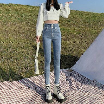 【3日以内出荷】脚長効果!スキニーデニムパンツ ハイウエスト レディース 2024 春と秋の新作 ストレッチ スリム タイト ブーツ付き ペンシルパンツ 韓国