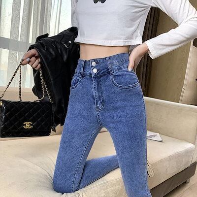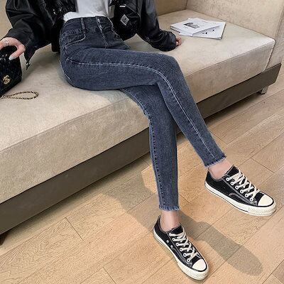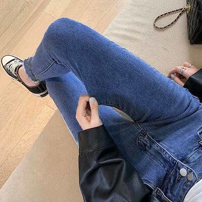 脚長効果!スキニーデニムパンツ ハイウエストデニムパンツ2023年新作秋冬スリムストレッチペンシルパンツ レディース 韓国