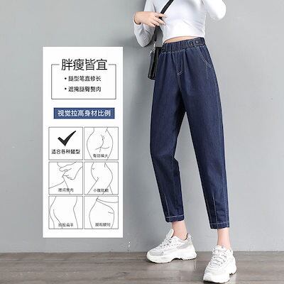 【3日以内出荷】脚長効果!スキニーデニムパンツ 腰を緩める ジーパン 秋の2024年モデル ストレートシリンダ ゆとりがある 九分ズボン カジュアル パンツ レディース 韓国