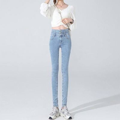 【3日以内出荷】脚長効果!スキニーデニムパンツ ハイウエスト ジーンズ 身を修める 2024年秋モデル 鉛筆ズボン やせて見える ぴったり合った レディース 韓国