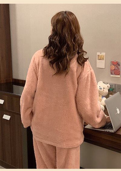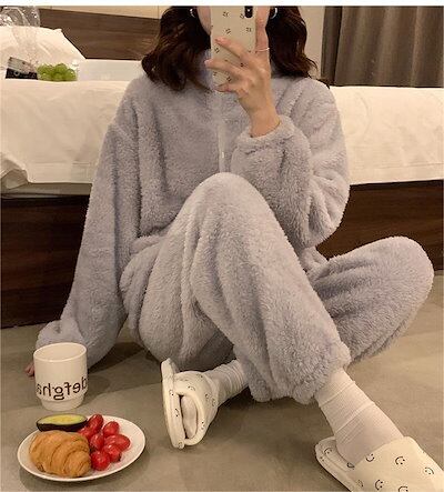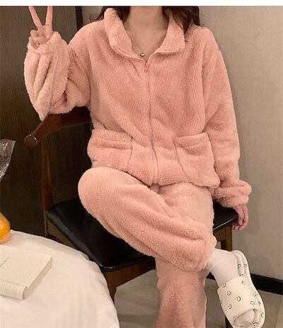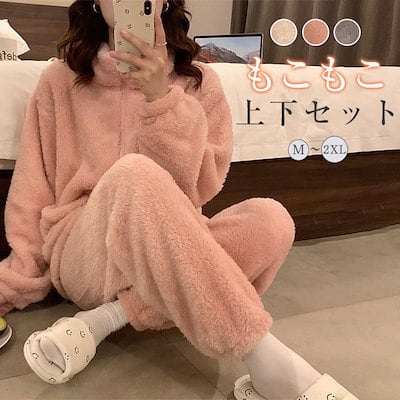 ルームウェア もこもこ パジャマ レディース 冬 着る毛布 フリース 上下セット 2点セット 長袖 前開き ハイネック ロングパンツ ふわふわ 暖かい 部屋着 ホームウェア 寝間着 ナイトウェ