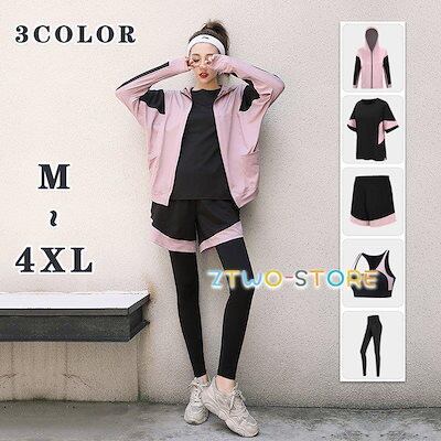 スポーツウェア レディース 5点セット ヨガウェア トレーニングウェア ランニングウェア 上下 4点セット フィットネス ジャージ