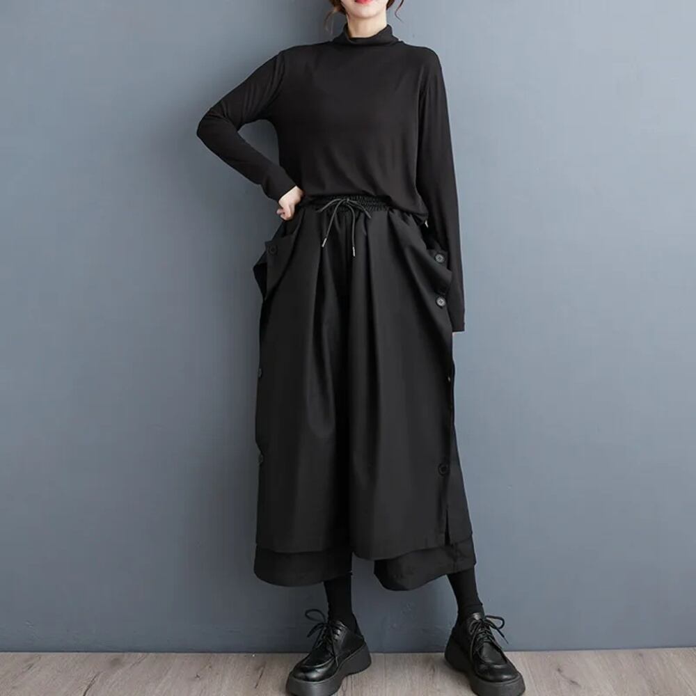 女性用ワイドレッグパンツ,サイドボタン付きワイドレッグ,足首の長さ,ゆったりとしたストリートウェア,バギーパンツ,2層,ハイウエスト,レディース,#2970 y2k ボトムス T240901065856_01