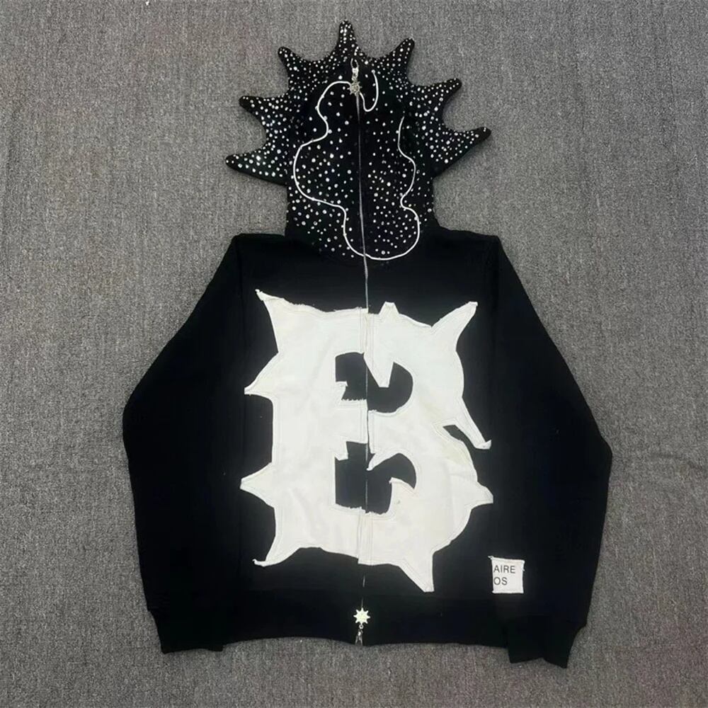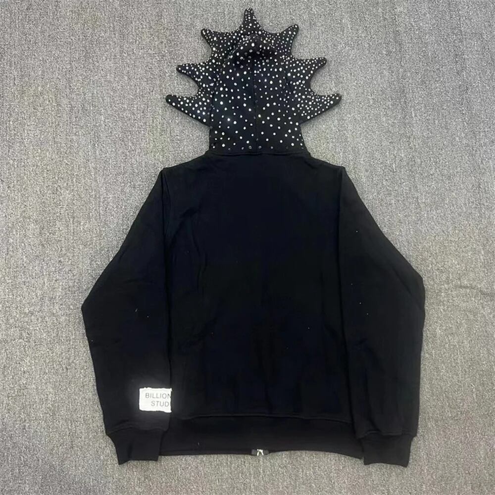 億万長者-パーソナライズされたフルジップパーカー、ダイヤモンドプリントセット、ブラック y2k ボトムス T240901094942_01