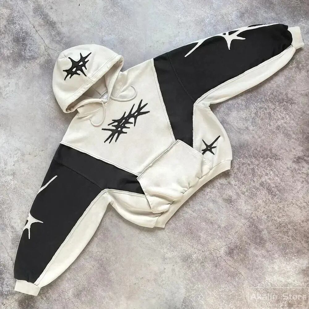 男性用ルーズジップパーカー、y2kパッチデザイン、幾何学模様、スプライススウェットシャツ、ゴシックストリートウェア、特大カジュアルウェア y2k ボトムス T240901094956_03