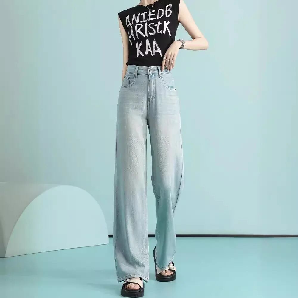 レディースデニムベルボトムス,ソフトテンセル生地,ルーズフィット,ストレート,ドレープ,スリム,地面までの長さ,カジュアルジーンズ,夏 y2k ボトムス T240901101352_01