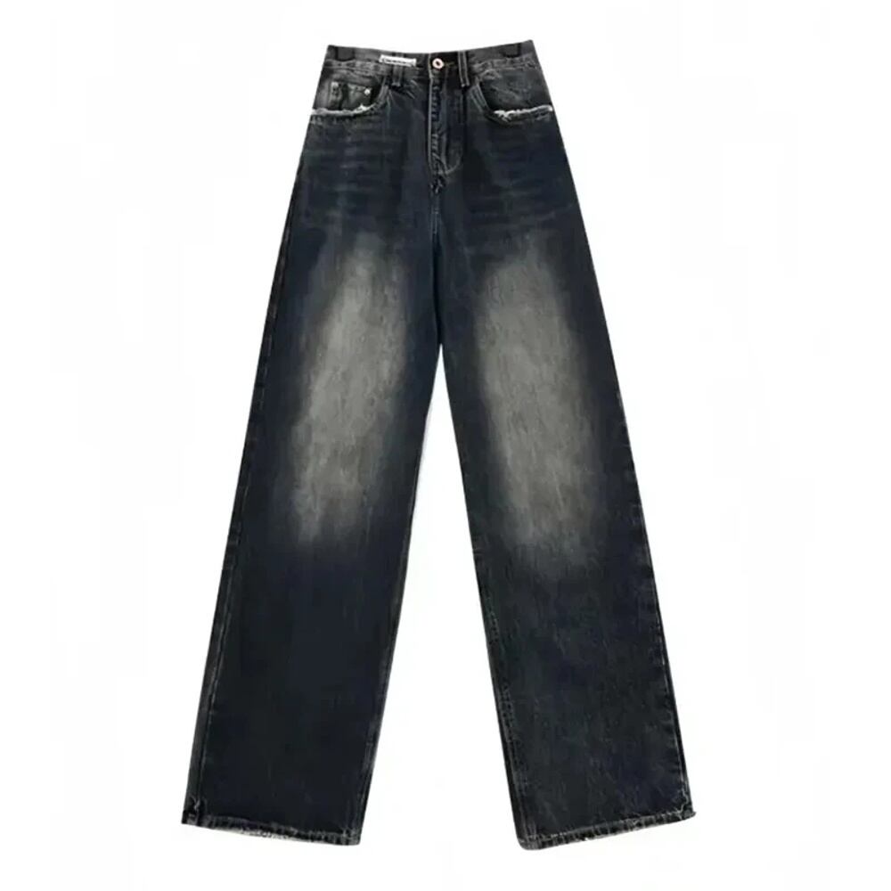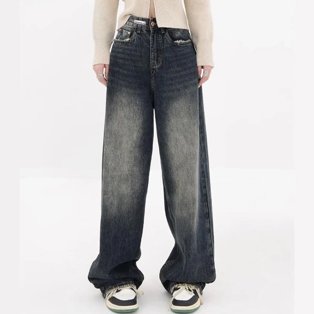 女性のアメリカンレトロハイウエストジーンズ、ストレートレッグ、ルーズ、ワイドレッグ、ウォッシュド、ディストレスト、多用途、カジュアルパンツ y2k ボトムス T240901102116_01