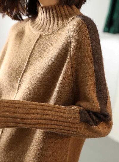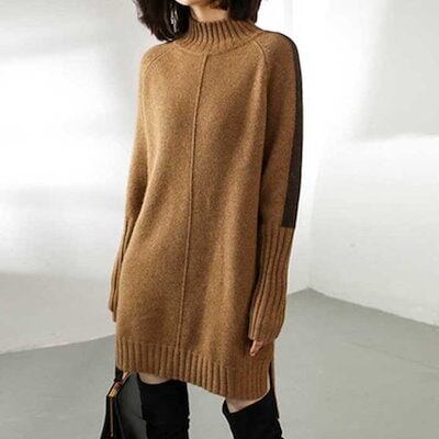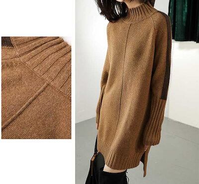 ニットセーター ニット セーター 秋冬 レディース ゆったり チュニック プルオーバーセーター ハイネック プルオーバー トップス リブニット ゆる 秋 冬 通勤 体型カバー 長袖 裾前後差 センター