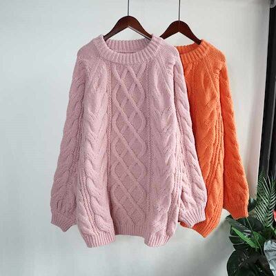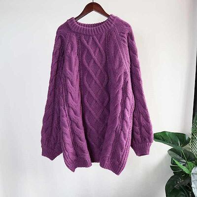 ニットセーター 秋冬 プルオーバー セーター ケーブル編み 厚手 トップス 長袖 大きいサイズ セーター レディース アウター ラウンドネック 秋 冬 ニットソー 無地 リブニット ベーシック インナ