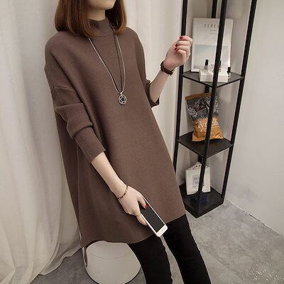 セーター レディース 秋冬 長袖 ワイド ロングセーター トップス ニットセーター カットソー 無地