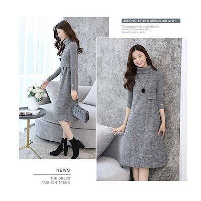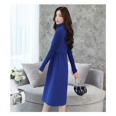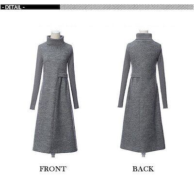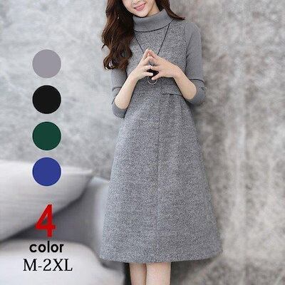 ワンピース 秋冬 大人 ハイネック タートルネック 長袖 Aライン ロングワンピース レディース 膝