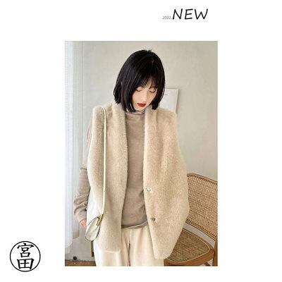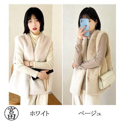 フェイクファー ベスト レディース 秋冬 ファーベスト 大きいサイズ ノーカラー ビッグVネック ロングファーベスト 前開き ヒップカバー 裏地 かわいい ロング