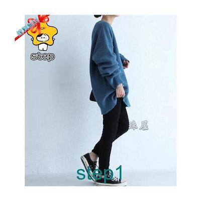 ニット レディース 洗える ロングニットトップス 秋冬 長袖 チュニック ドルマンスリーブ ゆったり セーター ワイド 無地 ラウンドネック ストレッチ 冬