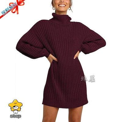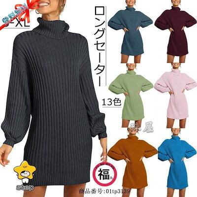 セーター リブニット プルオーバー レディース 秋冬 トップス ニット ロング丈 長袖 チュニック ハイネック カジュアル 無地 カラバリ 20代 30代 40代 50代