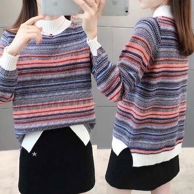セーター レディース マルチカラーセーター 人気 ハイネック ゆる 柄 ふわふわ ざっくり 洗える 春 冬 ノルディック 長袖 黒 厚手 ニットセーター ケーブル編み おしゃれ かわいい ニット 白