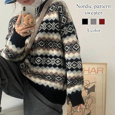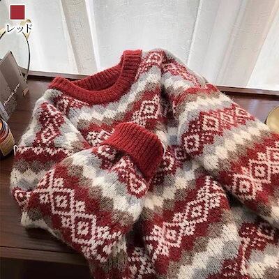 セーター レディース ノルディック柄セーター 厚手 秋 冬 洗える 白 春 ニット 長袖 クルーネック Vネック トレーナー おしゃれ ニットセーター ノルディック 柄 タートルネック ふわふわ 人気