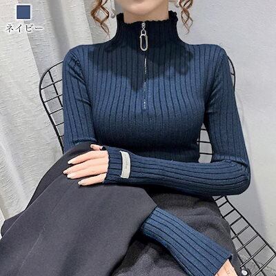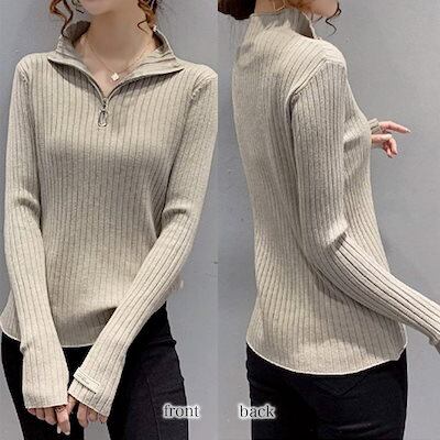 セーター レディース ハーフジップリブニット タートルネック ゆる ざっくり かわいい 厚手 ケーブル編み トレーナー 人気 白 黒 ブランド 柄 ハイネック ニットセーター 春 クルーネック おしゃ