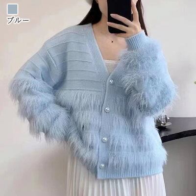 セーター レディース Vネックシャギーカーディガン 秋 ゆる おしゃれ かわいい 柄 タートルネック 長袖 黒 洗える ニット ケーブル編み ふわふわ 厚手 ざっくり 冬 ニットセーター 白 ハイネッ