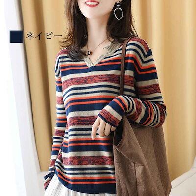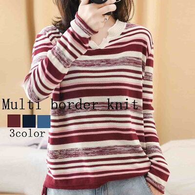 TOKYO BASICセーター レディース マルチボーダーニット タートルネック ゆる ざっくり かわいい 厚手 ケーブル編み トレーナー 人気 白 黒 ブランド 柄 ハイネック ニットセーター 春 クルーネック おしゃれ