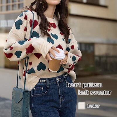 セーター レディース ハート柄ニットセーター 秋 ゆる おしゃれ かわいい 柄 タートルネック 長袖 黒 洗える ニット ケーブル編み ふわふわ 厚手 ざっくり 冬 ニットセーター 白 ハイネック ノ