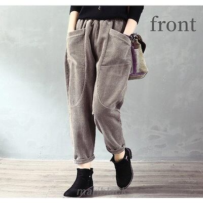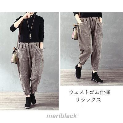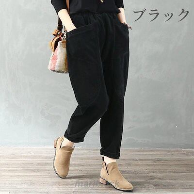 サルエルパンツ レディース コーデュロイ アラジン テーパード アメカジ ズボン ウェストゴム ゆったり 大きい 体型カバー リラックス ボトムス 春 秋冬 コーデ