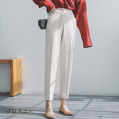 テーパードパンツ パンツ レディース ボトムス ハイウエスト ウエストゴム 体型カバー 楽ちん オフィス 就活 カジュアル 通勤 ズボン 無地