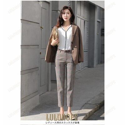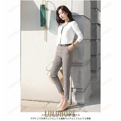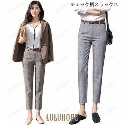 テーパードパンツ グレンチェック レディース スラックス チェック柄 パンツ 九分丈 女性 スーツパンツ レトロ 通勤 お洒落 春秋 夏