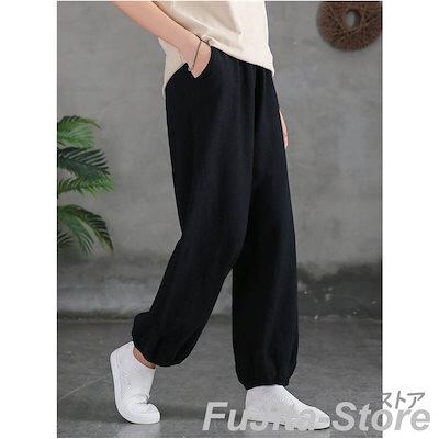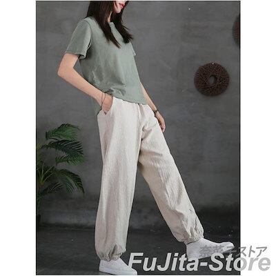 パンツ テーパードパンツ ボトムス レディース 薄手 ゆったり 涼しい 綿麻 ロング丈 ウェストゴム カジュアル 通気 通勤