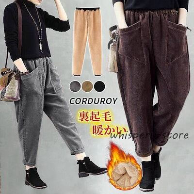 テーパードパンツ コーデュロイパンツ レディース 裏起毛 暖かい 秋 冬 サルエルパンツ ハイウエスト コーデュロイ パンツ ゆったり