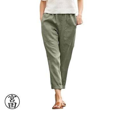 これはレディースのカーゴパンツでテーパードフィットのスタイルが体型を整えるのに適しています オフィスや日常の外出に適しており涼しく感じます