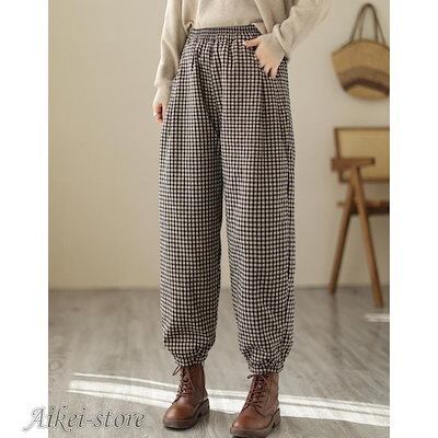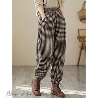 サルエルパンツ チエック柄 中綿パンツ 厚手 ズボン ボトムス テーパードパンツ レディース 大きいサイズ 暖かい 無地 カジュアル 着痩せ 秋冬