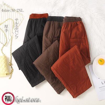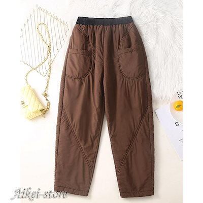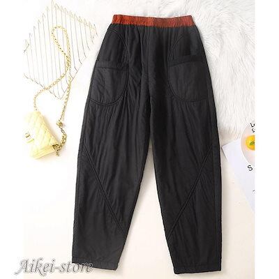 サルエルパンツ 厚手 テーパードパンツ ボトムス ズボン レディース ポケット付き ゆったり 無地 ウエストゴム ハイウェスト