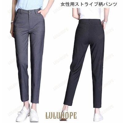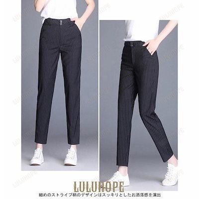 テーパードパンツ レディース サルエルパンツ ストライプ柄 九分丈パンツ お洒落 スラックス 女性 スーツパンツ 通勤 パンツ 薄手 美脚