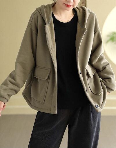 ボタンパーカー 裏起毛 レディース 秋 冬 厚手 長袖 スウェット パーカー 大きい サイズ ジャケット ブルゾン アウター カーディガン ライトアウター コート ボタン 長袖 羽織り 大きい ゆった