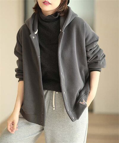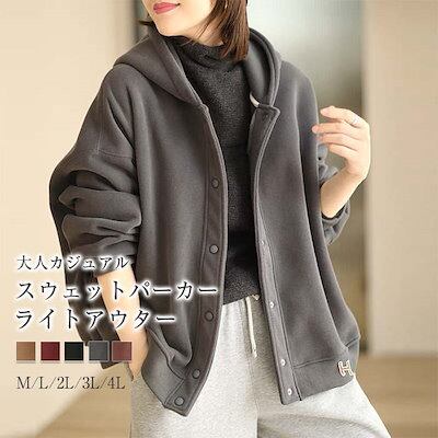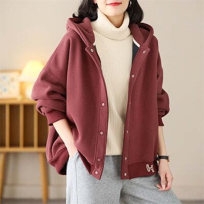 パーカー レディース スウェット トップス 長袖 裏起毛 秋 冬 春 ライトアウター ボタンパーカー ジャケット ブルゾン フード フーディ 羽織り 厚手 裏ボア 防寒 保温 暖か 無地 ゆったり ト