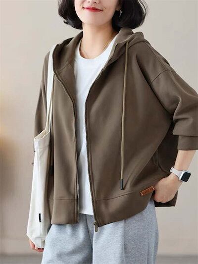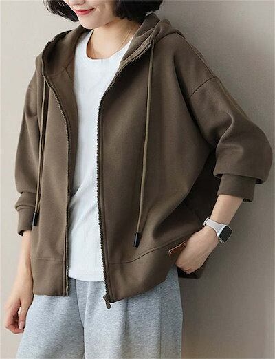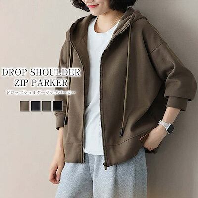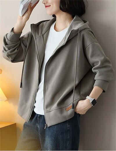 パーカー アウター レディース おしゃれ ジップアップ オーバーサイズ ゆったり 長袖 スウェット フード ミドル丈 羽織り 厚手 軽い ジップパーカー ジャケット ブルゾン ライトアウター ジャージ