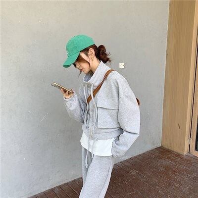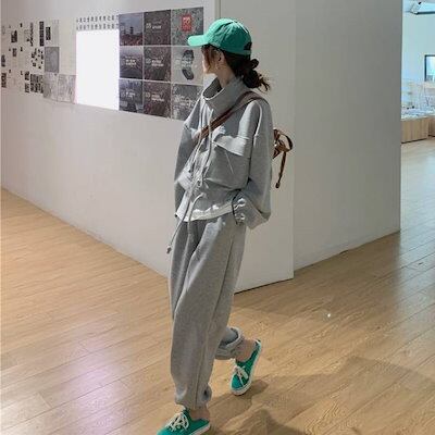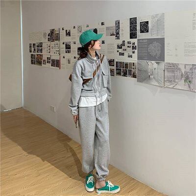 セットアップ レディース 上下セット グレー かっこいい おしゃれ 大人可愛い プルオーバー ジャージ スウェット パンツ ツーピース ジョガーパンツ スポーティー 長袖 パーカー フード無 無地 ラ