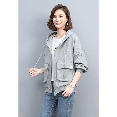 秋新作 パーカー ジャケット レディース ジップアップ パーカー体型カバー チュニック 長袖 ゆったり カジュアル アウター